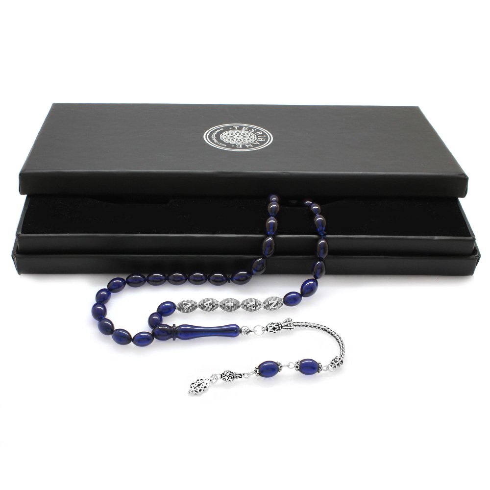 925 Ayar Gümüş Püsküllü Arpa Kesim Gümüş İsim Yazılı Lacivert Sıkma Kehribar Tesbih quantity