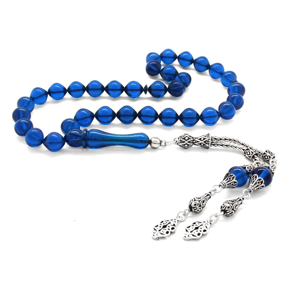 925 Ayar Gümüş Püsküllü İstanbul Kesim Lacivert Sıkma Kehribar Tesbih quantity