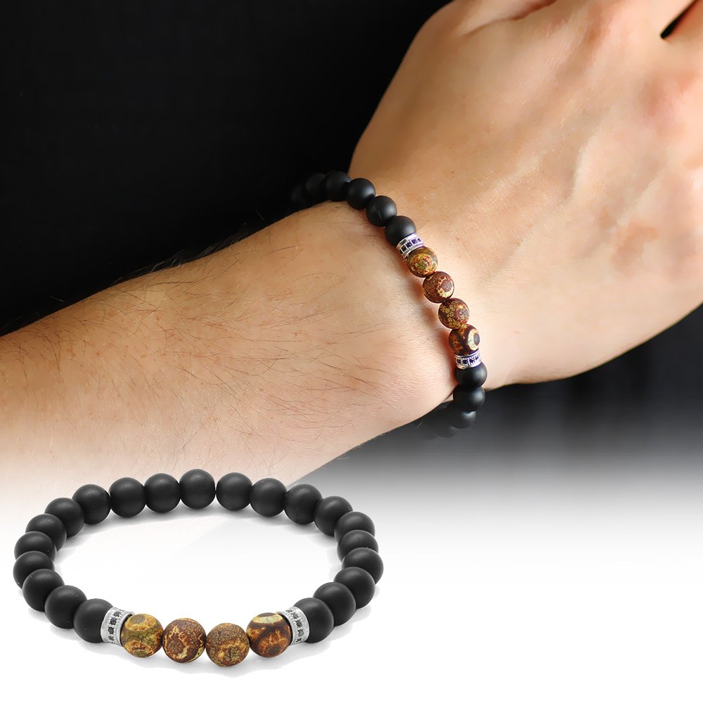 Küre Kesim Oniks-Tibet Akik Kombinli Erkek Doğaltaş Bileklik quantity