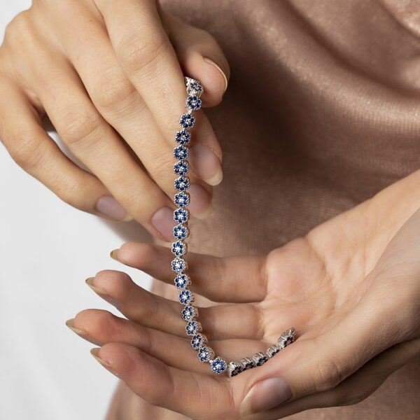 Mavi Zirkon Taşlı Çiçek Tasarım Tam Tur 925 Ayar Gümüş Kadın Bileklik quantity