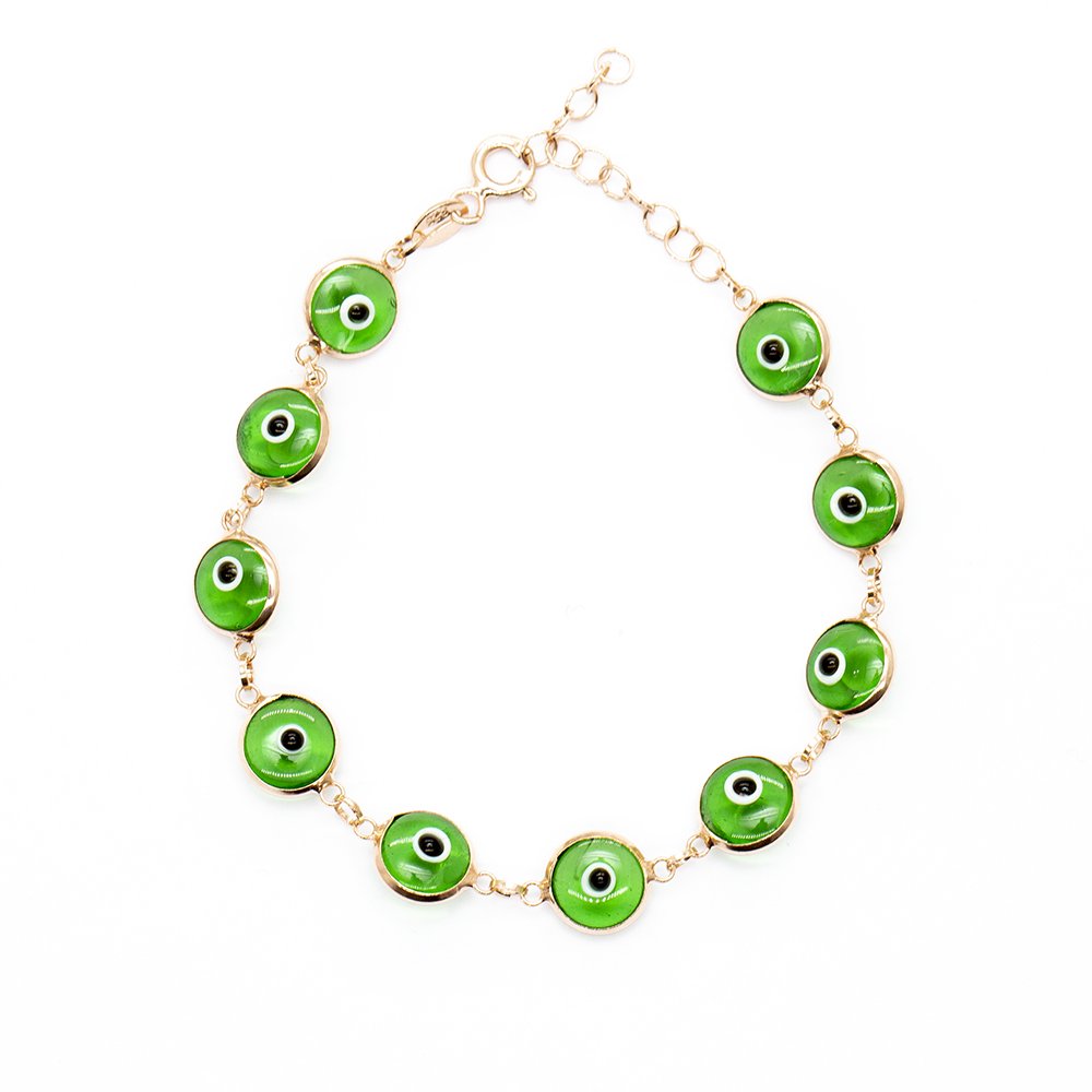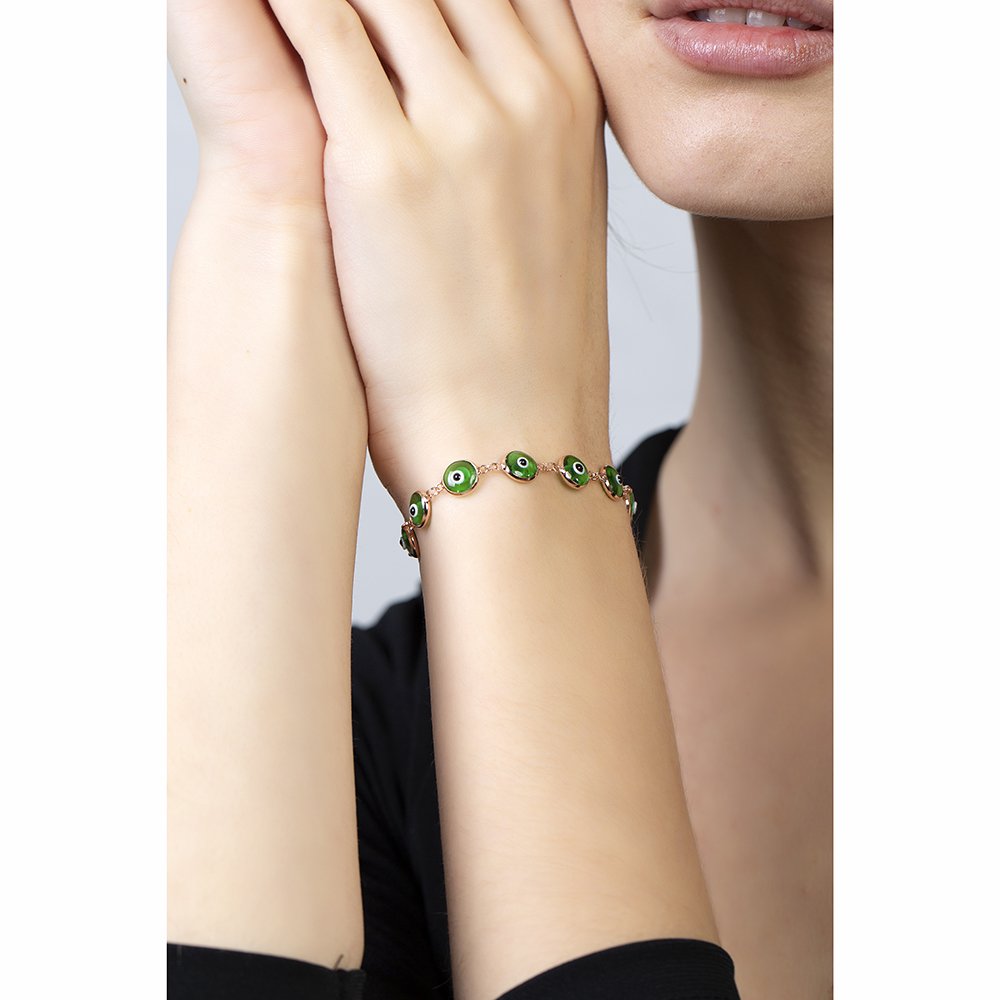 Nazar Boncuğu Detaylı Yeşil Mineli Rose Renk 925 Ayar Gümüş Kadın Bileklik quantity