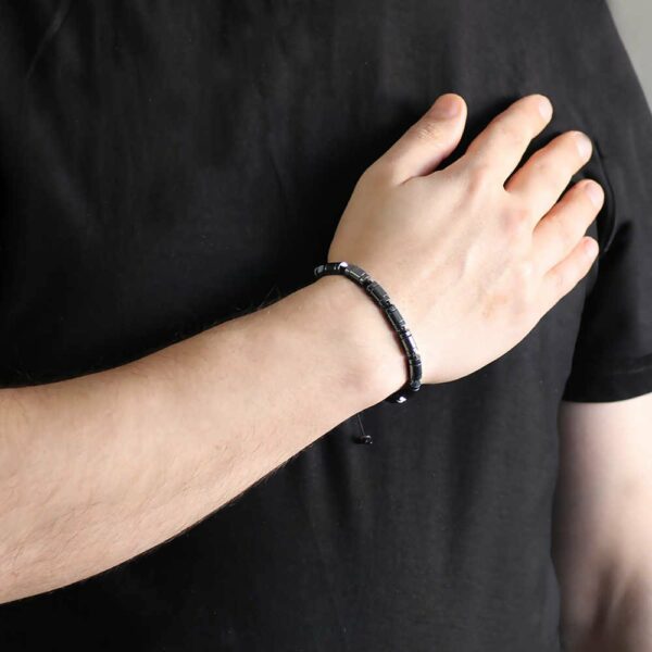 Silindir Kesim Makrome Örgülü Siyah Hematit Doğaltaş Bileklik quantity