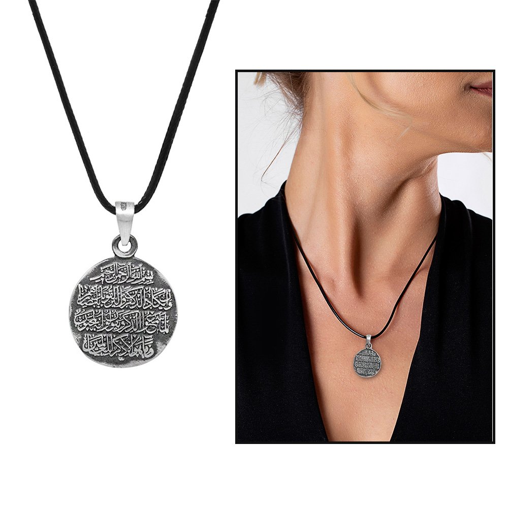/ Üzerinde Nazar Ayeti Yazılı Zarif İp Zincirli 925 Ayar Gümüş Kadın Cevşen Kolye
